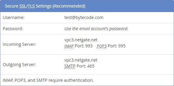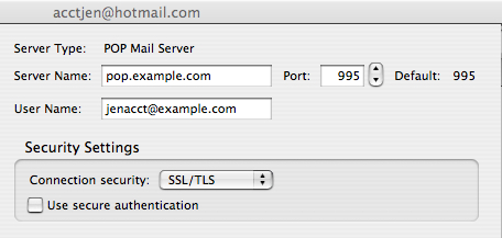 • incoming mail server and port (for example, “pop.example.com” and port 110 or “imap.example.com” and port 143). The incoming mail server settings can be found inside of your hosting control panel under the email account settings. Ignore the outgoing server settings. To prevent spammers from hacking your password and sending spam we do not allow direct SMTP connections to the incoming mail server.